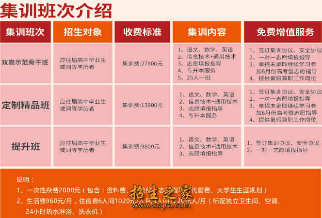 2026年单招集训班开设班型